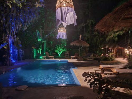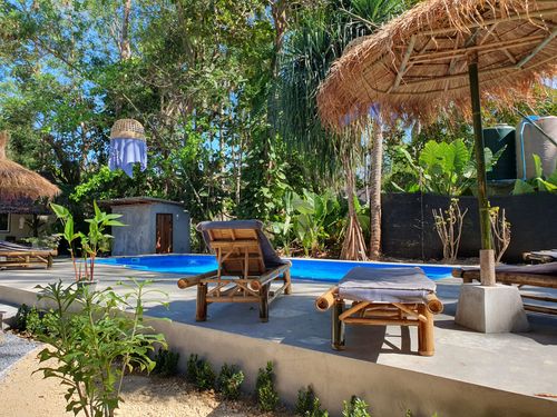 The pool area at The Mellow Mango resort is a highlight of the property, offering guests a refreshing oasis in the midst of tropical paradise. Surrounded by towering palm trees and fragrant flowers, the pool is the perfect place to cool off, relax, and soak up the sun.The resort's garden area is equally impressive, with a wide variety of tropical plants and trees creating a vibrant and colorful landscape. Guests can take a leisurely stroll through the garden, relax in the shade of a tree, or simply admire the natural beauty of the surroundings from their bungalow terrace.